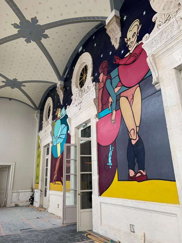 Dégagements et restauration de décors faux marbre et trompe l’œil, fausse-pierre, filage, peinture dorée, pose de vernis au chantier de restauration du Théâtre du Châtelet avec l’atelier de restauration de décors Eschlimann.