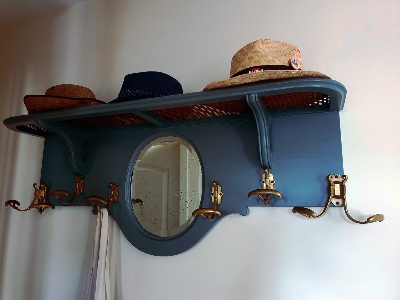 Décrassage et cirage du meuble en chêne, décrassage et nettoyage des poignées et patère en laiton, du cannage et du zinc. Nettoyage, ponçage et peinture des meubles.